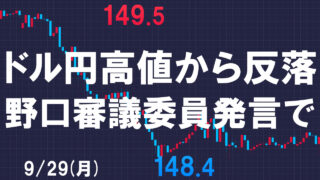 FX 野口審議委員発言で下落 週明け月曜のドル円は朝方から下落していき、150円付近の高値から反発した形となり148.4円まで下落していきました。 先週から上昇トレンドが続いて150円を突破するか注目されましたが、とりあえず小休止といった感じで一週間の始まりとなりました... 2025.09.30 FX