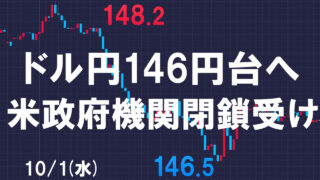 FX 米政府機関閉鎖となったが 10月初日のドル円はアメリカの政府機関の閉鎖が決定してドルが売られ、146.5円まで下落していきました。 しかし閉鎖を受けても米国の株価は下落していないようですので、影響はそれほど大きくならないかもしれません。 ドル円 +25.9... 2025.10.02 FX