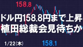 水曜のドル円は157円台を付ける場面もありましたが、グリーンランド問題への懸念が後退して158.円までリスクオンの展開となりました。  158円付近の攻防がまだ続くかもしれませんが、とりあえず米欧の対立が緩和して円安に戻りそうな感じとなって...
