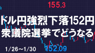 先週のドル円は先々週の金曜の日米レートチェックからの下落が継続し、下窓スタートから始まり結局152円まで猛烈に円高が進行しました。 年明けから大きく動いたドル円ですが、衆議院選挙を控えていますので2月に入ってからも大きく荒れてトレーダーにと...