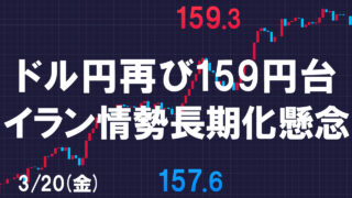 週末金曜のドル円はイラン情勢による有事のドル買いで、再び160円を目指すような強烈な上昇となりました。 前日は植田総裁の会見などで157円台まで円高となりましたが、その下落は一体何だったんだと言わんばかりのドル買いがまたやってきた感じです。...