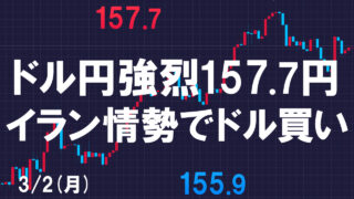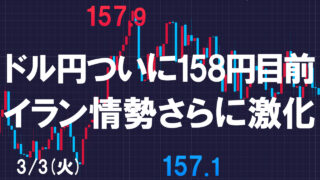 火曜のドル円はさらに高値を伸ばし、158円目前の157.9円まで円安が進行しました。 アメリカによるイラン攻撃が開始してから強いドル買いの流れとなっていますが、戦局の混迷も深まっておりさらに有事のドル買いが来ているようです。 ドル円 ...