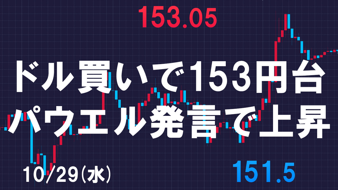 水曜のドル円は朝方に下落する場面もありましたが、夜中のパウエル議長の発言を受けて153円ちょうど付近まで上昇していきました。
