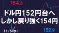 153円付近は10月前半の高市トレードの高値でしたので抵抗もありそうですが、下げてくれば再び150円を目指すかもしれません。
