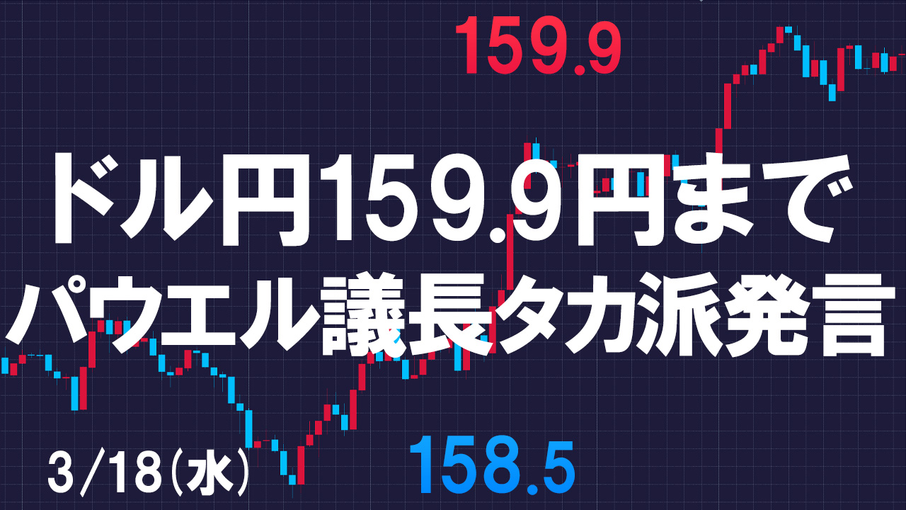 水曜のドル円は欧州時間前には安値を更新する158.5円まで下落する場面もありましたが、夜中のパウエル議長の会見後に再び160円に迫りました。