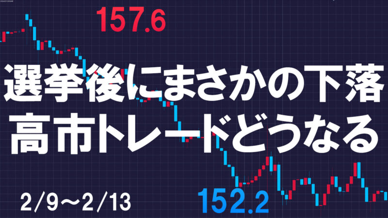 先週のドル円は自民圧勝によって高市トレードによる円売りが続くと思いきや、予想外の下落で再び152円まで円高が進行しました。