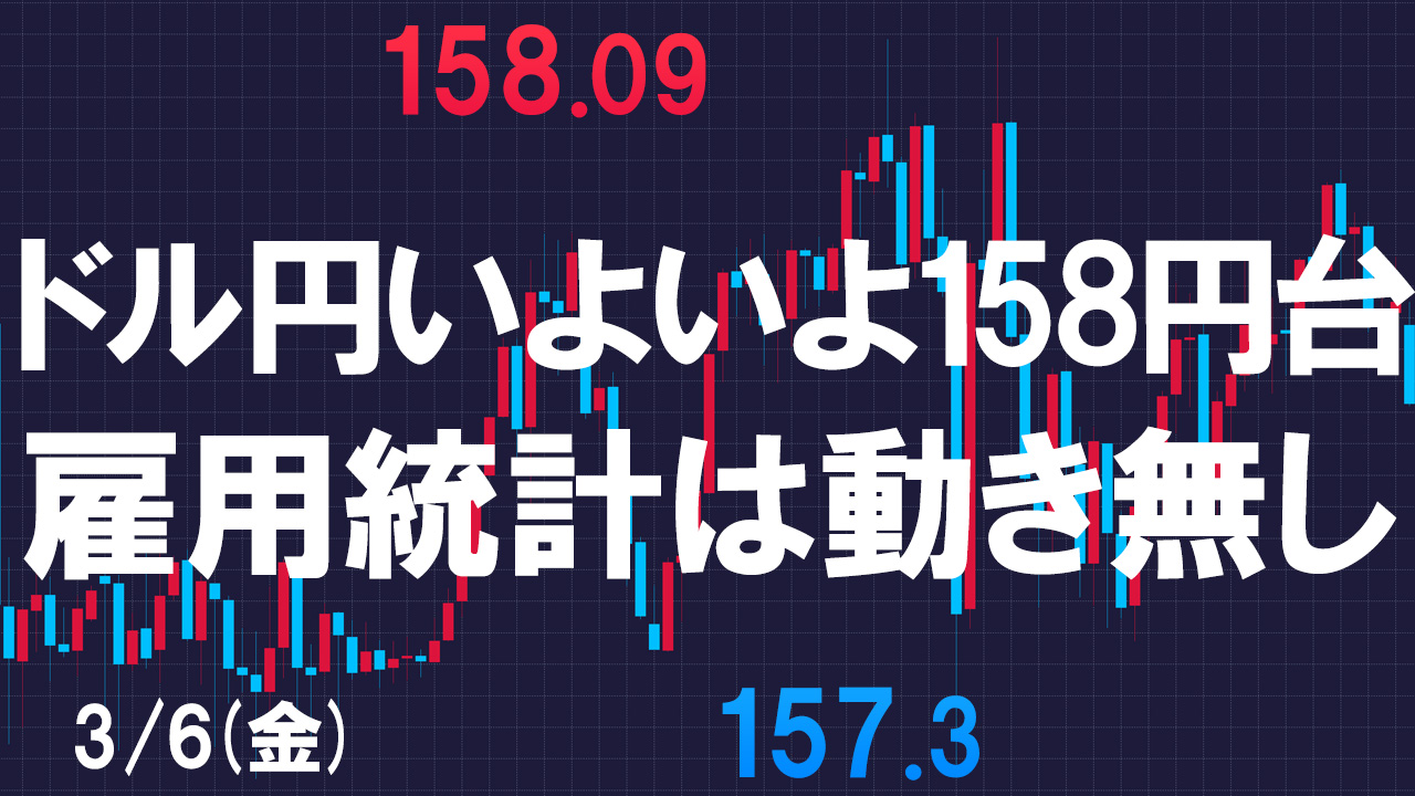 週末金曜のドル円はついに158まで上昇するような円安の流れとなり、レートチェック前の159円がいよいよ見えてくる値まで来ました。