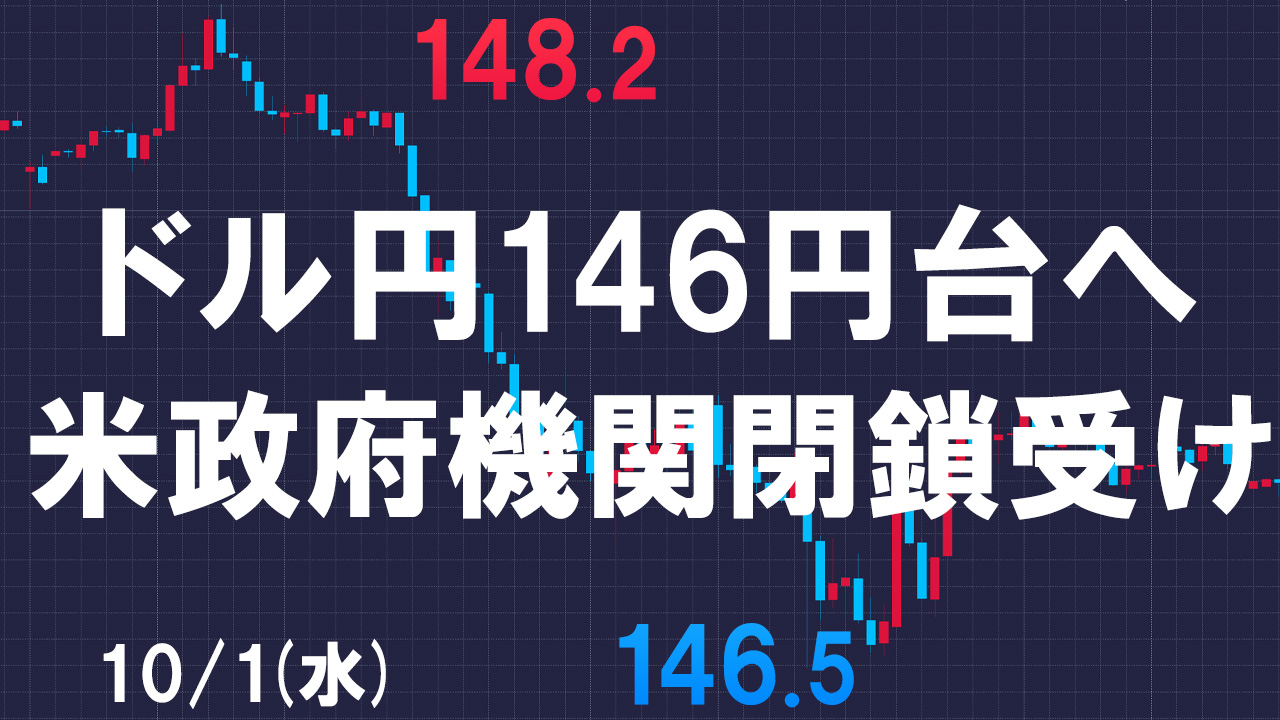 10月初日のドル円はアメリカの政府機関の閉鎖が決定してドルが売られ、146.5円まで下落していきました。