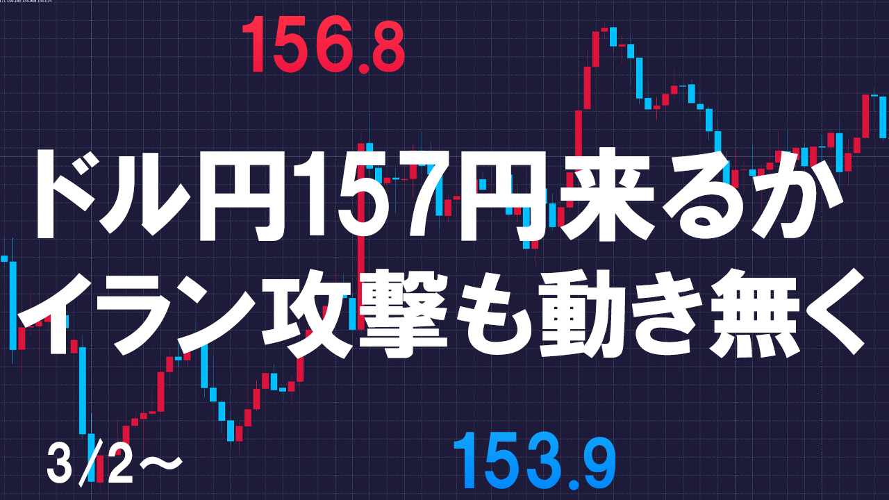 イラン情勢が相場に与える影響は予想できませんが、基本的には円安継続の上昇トレンドで157円を付けにいくかどうかが注目でしょう。