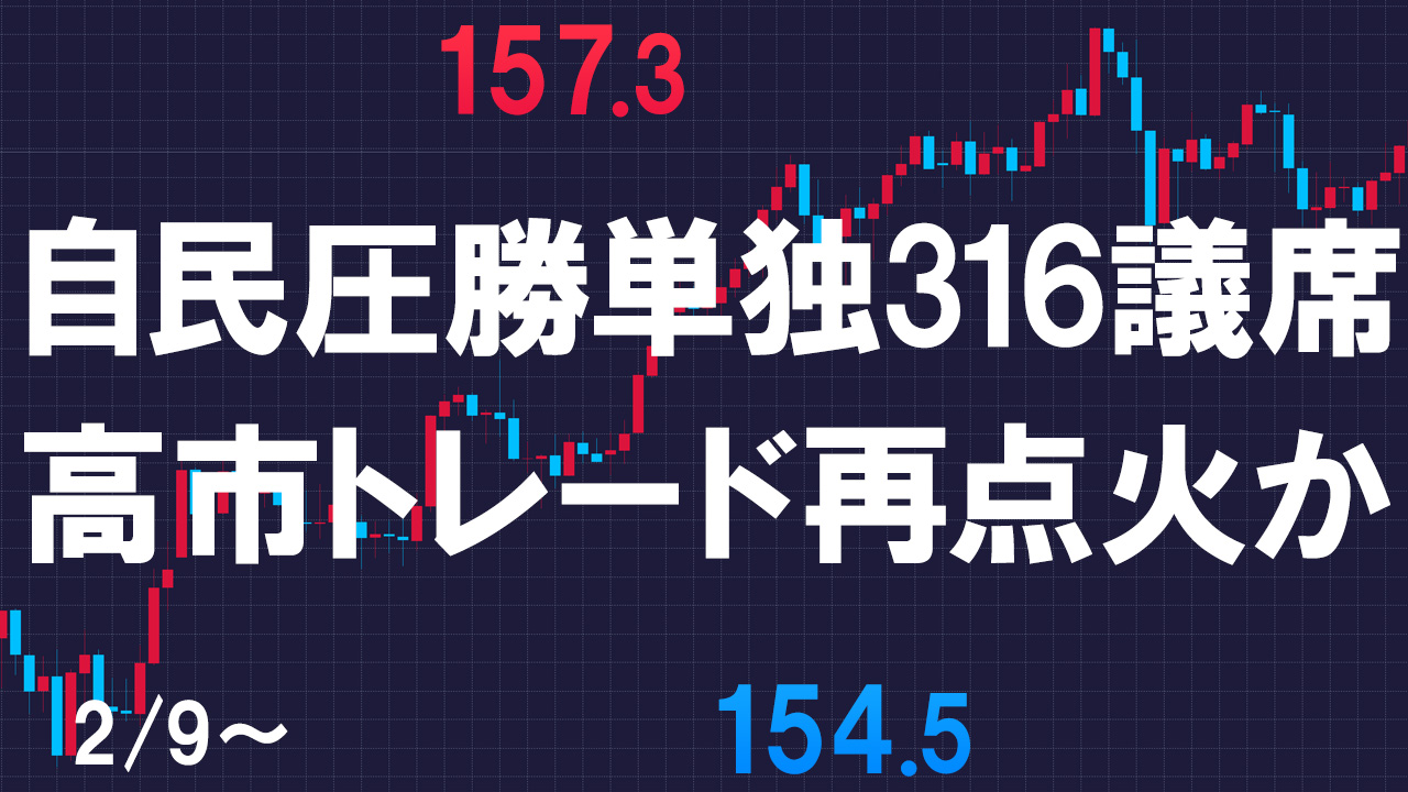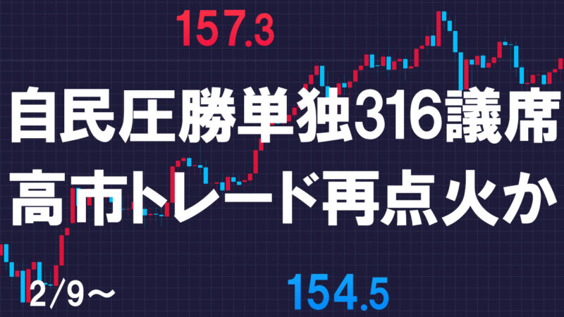 自民単独316議席獲得という想像を遥かに超える圧勝劇ということで、基本的には円売り継続となりそうですが、早速三村財務官の口先介入がありましたので下げ圧力もしぶとく残りそうです。