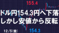 木曜のドル円は昼過ぎぐらいまでは徐々に上げていきましたが、一部報道で「高市政権が利上げを容認した」とのニュースが伝わると下げていき、安値を更新する154.5円まで円高が進行しました。