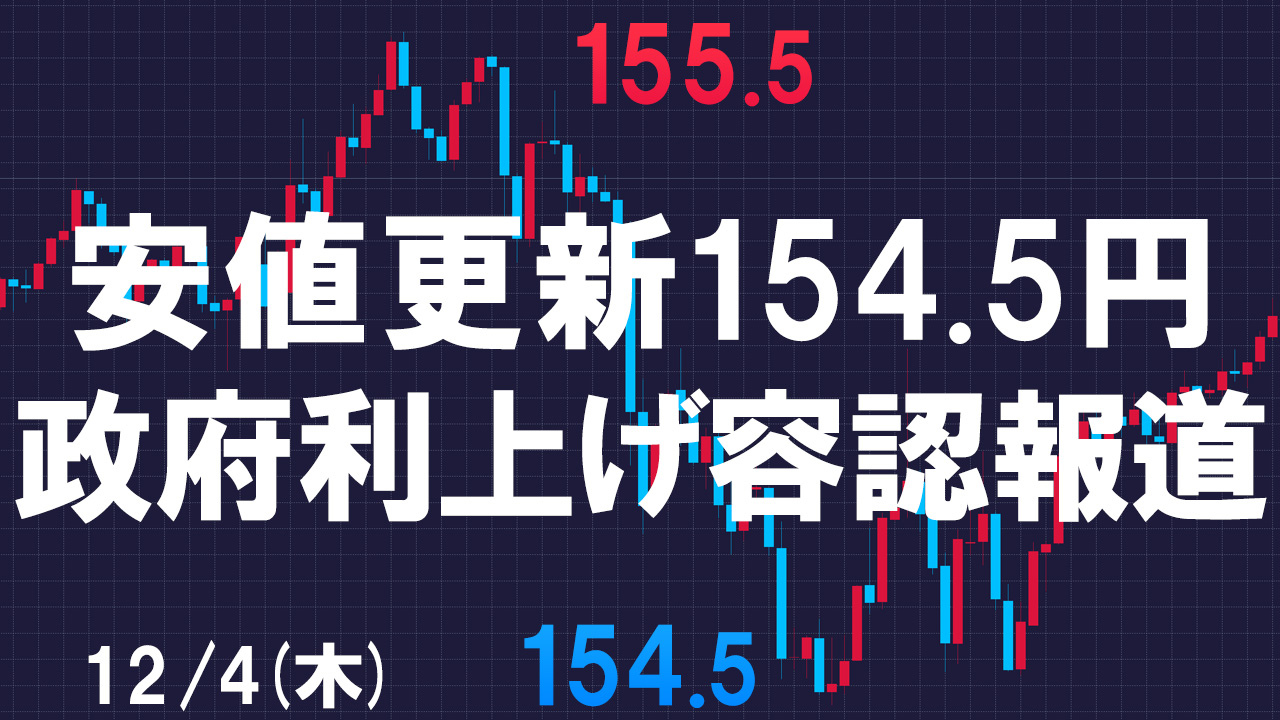 木曜のドル円は昼過ぎぐらいまでは徐々に上げていきましたが、一部報道で「高市政権が利上げを容認した」とのニュースが伝わると下げていき、安値を更新する154.5円まで円高が進行しました。