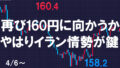 週明け月曜のドル円は160円手前で跳ね返されるような動きが続き、幅のあるレンジで難しい一日でした。