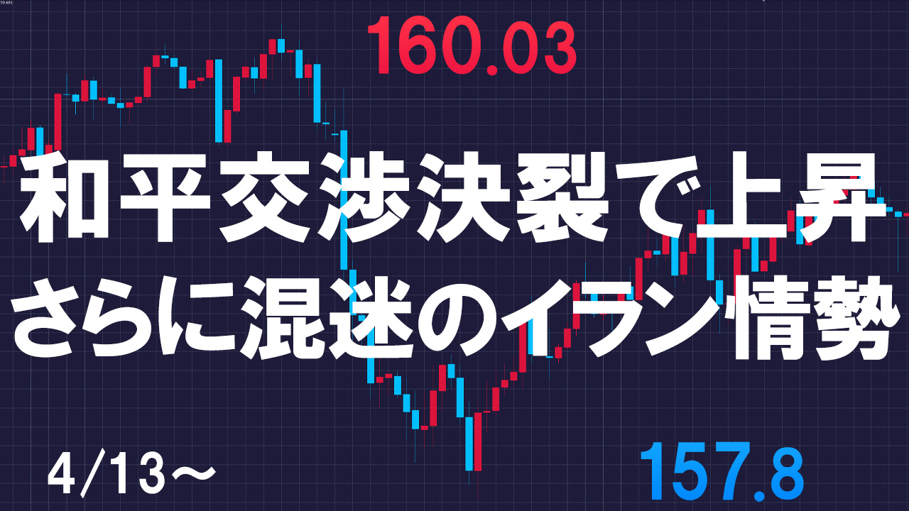 週末に行われていたアメリカとイランの和平交渉が決裂し、ドル円は月曜の朝から上窓スタートとなっています。