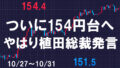 午前中には片山財務相による、「為替相場では足元で一方的、急激な動きが見られる」という口先介入のような発言があり、153円台まで下落する場面がありました。