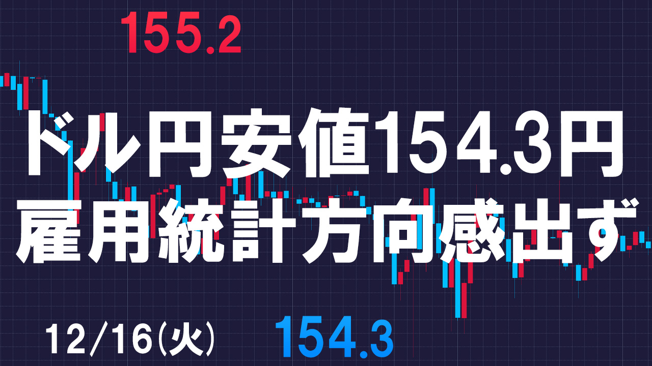 火曜のドル円は注目の雇用統計の発表があり、結果は概ね良かったのですがそれほど上昇せず、瞬間的に154.3円まで安値を更新しました。