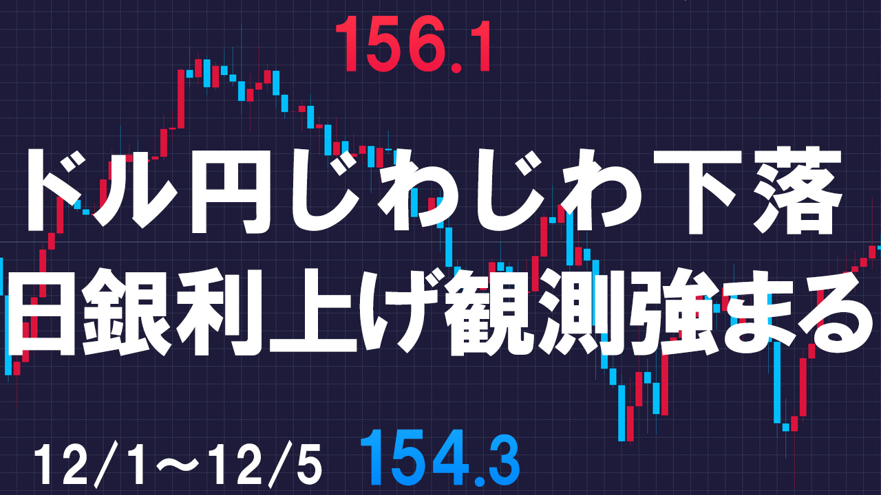 先週のドル円は次回の日銀会合で利上げが行われるという可能性が高まって円が買われ、154.3円までじわじわ安値を更新していく展開となりました。