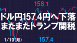 157円はとりあえず突破しましたが、超えてしばらくしてから久々に謎の強い下げが来て荒れた相場になりました。