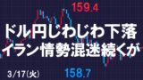 しかしすんなり和平交渉が進まないとの見方も根強く再び159円台で終了となりましたので、有事のドル買いの流れは簡単には止まらないかもしれません。