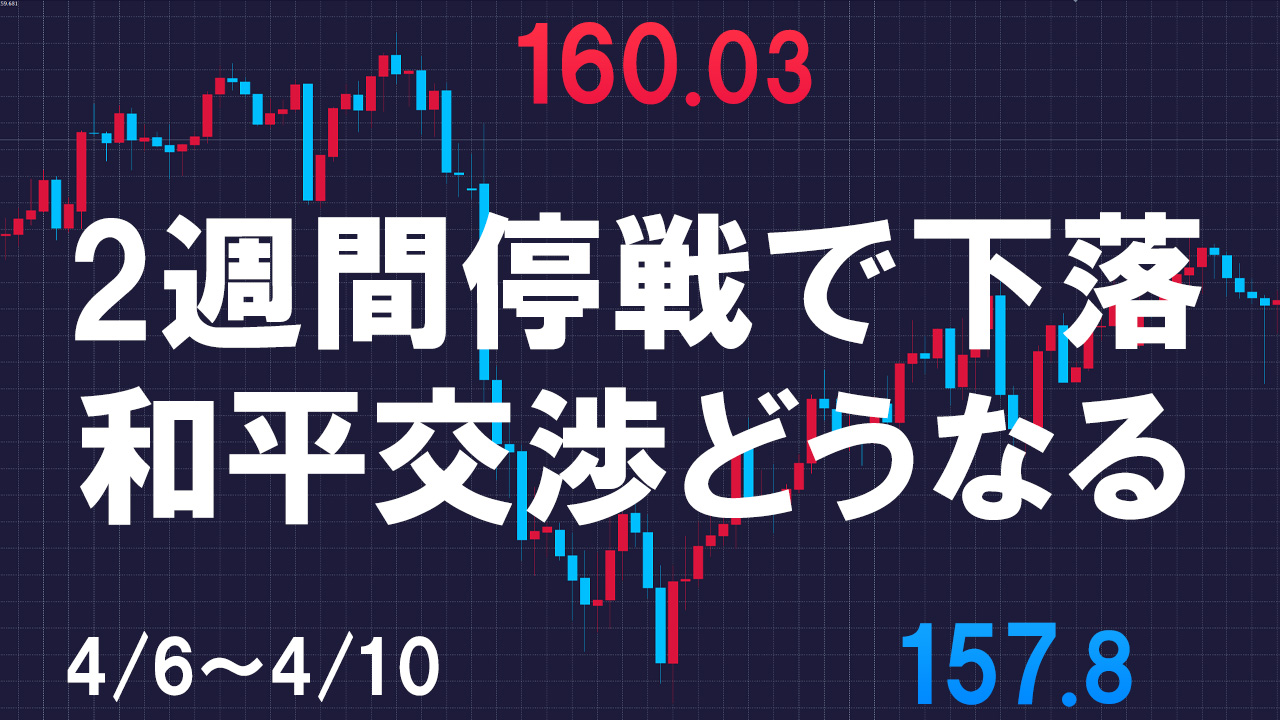 先週のドル円は160円台からスタートしましたが、水曜のアメリカとイランの停戦合意で157円台まで下落していきました。