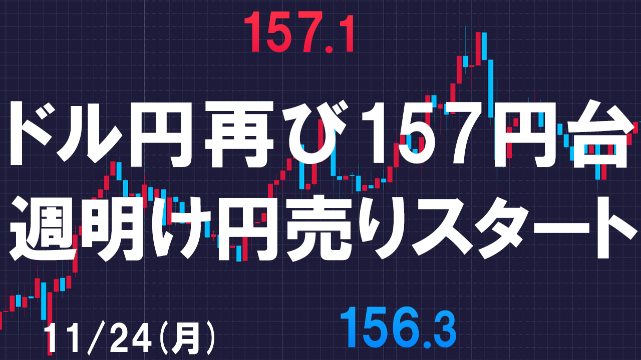 週明け月曜のドル円は先週金曜に下げたところがちょうど押し目を作ったかのように上げていき、再び157円台まで円売りが進行しました。