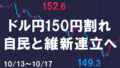 高市トレードで153円まで円売りが進んだドル円ですが、ついに150円割れのところまで下げてきました。