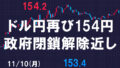 アメリカ政府機関閉鎖の解除はまだ発表されませんが、とうに折り込んでいるはずなので解除されてからのドル円の方向性はどっちなのか全く分かりません。