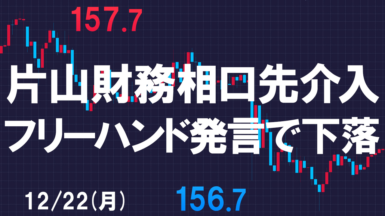 週明け月曜のドル円はクリスマス休暇の週ということで動きが少なくなると思われましたが、夜の片山財務相の発言で大きな値動きが発生しました。