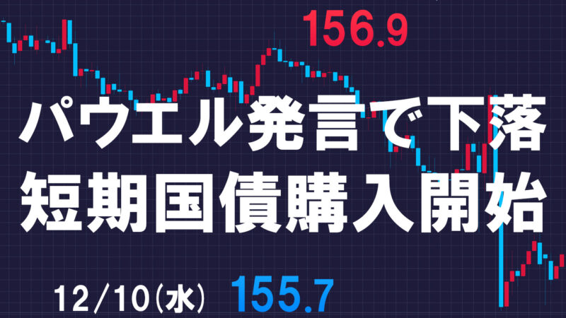 水曜のドル円は夜中に注目のFOMCとパウエル議長の発言があり、政策金利は予想通りでしたが短期国債の購入の決定ということでドルが売られることとなりました。