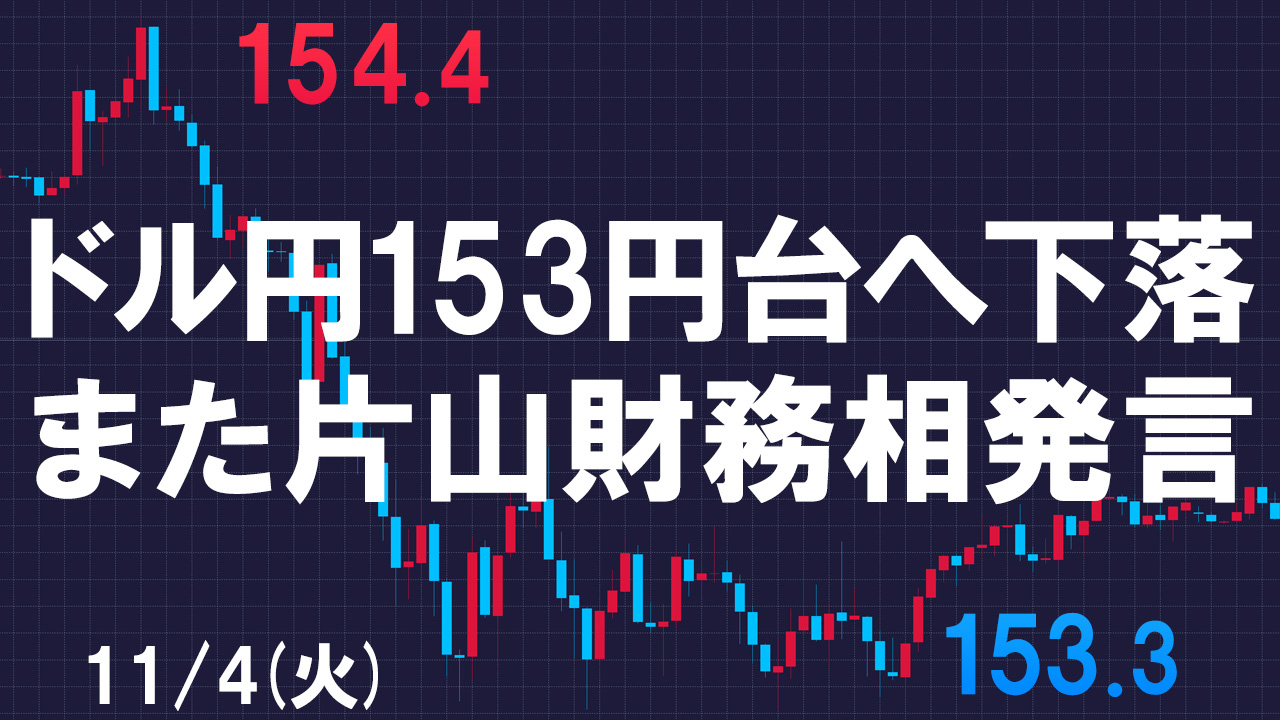 火曜のドル円は朝方に高値圏の154.4にアタックする場面もありましたが、その後は片山財務相の発言もあって強く下落していきました。