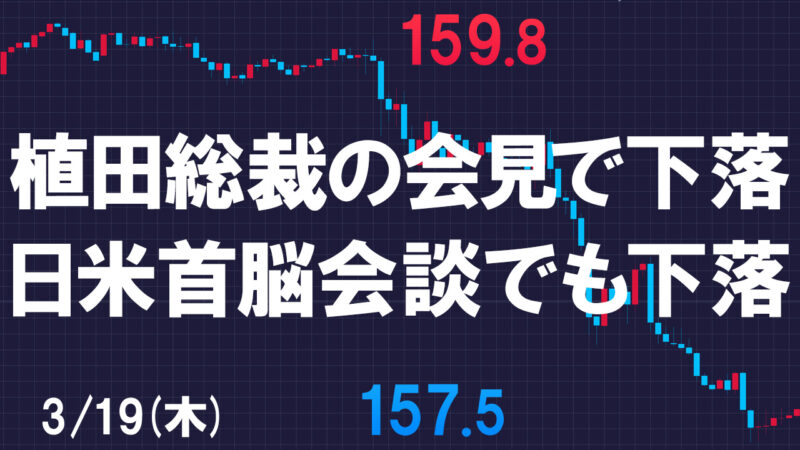 木曜のドル円は注目の植田総裁の会見を受けて下落し、そして日米首脳会談などでもさらに安値を攻めて157.5円まで下落していきました。