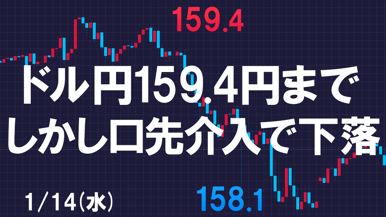 水曜のドル円はさらに高値を更新し159.4円まで円安が進行しましたが、その後は政府要人の口先介入が相次ぎ、一気に158.1円まで下落していきました。