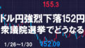 週末金曜のドル円は再び上昇して154.7円まで円安が進行し、週明けの窓を埋めに行くような動きとなりました。