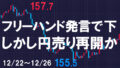 クリスマス明けで動きは少ないかと思われましたが、ボラが出て普段と変わらない相場でしたので再び強い円売りが始まる気配が感じられる一日でした。